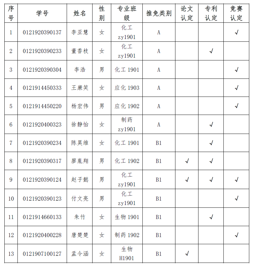 根据武汉理工大学教务处《关于开展推荐2023年优秀应届本科毕业生免试攻读硕士研究生工作的通知》文件精神,经学生个人申报,化生(马赛)学院组织专家组按学校相关要求对申请推免资格学生的科技创新成果、论文、竞赛获奖奖项及内容进行审核答辩鉴定,将13名应届本科毕业生的相关推免申请材料审核情况予以公示,公示结果见附件。