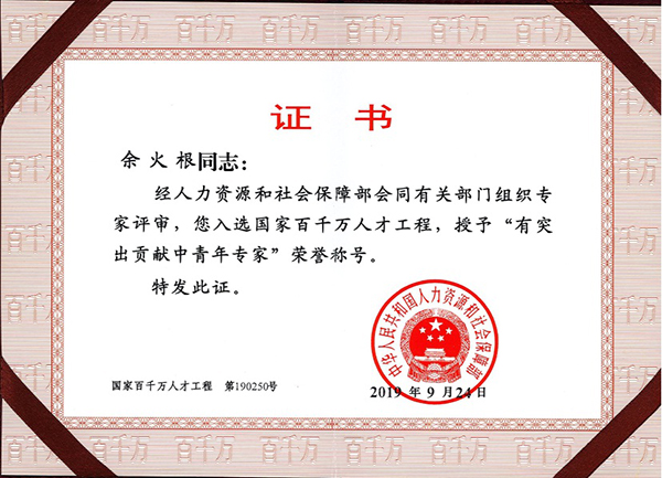 近日,人力资源和社会保障部公布了 “国家百千万人才工程”入选名单,我校化学化工与生命科学学院余火根教授入选,荣获“有突出贡献中青年专家”称号,学校“国家百千万人才工程”人选人数增至12人。