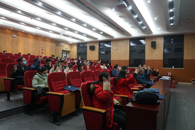 王利荣书记作学院工会工作报告,总结了2020年学院工会工作,并就学院工会财务状况以及2021年工会主要工作思路向大会作了报告。