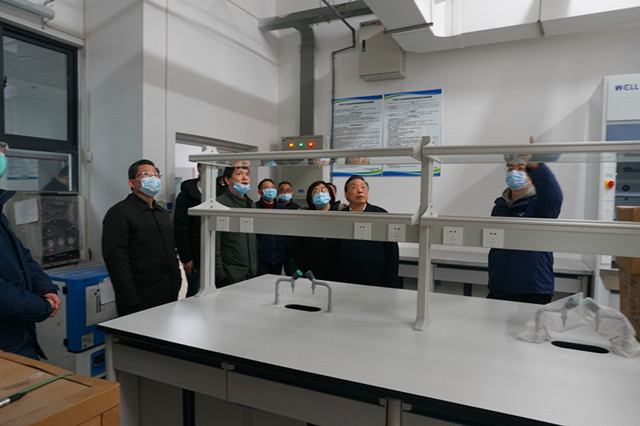 1月29日下午5:00,张清杰校长、王乾坤副书记来到化生学院新大楼调研走访,国有资产与实验室管理处李格升处长、基建处吴振东处长、新材料研究所罗小寒书记、网络安全与信息化工作领导小组办公室马斌主任以及设计院等单位人员一同参加调研,学院全体领导班子成员陪同调研。
