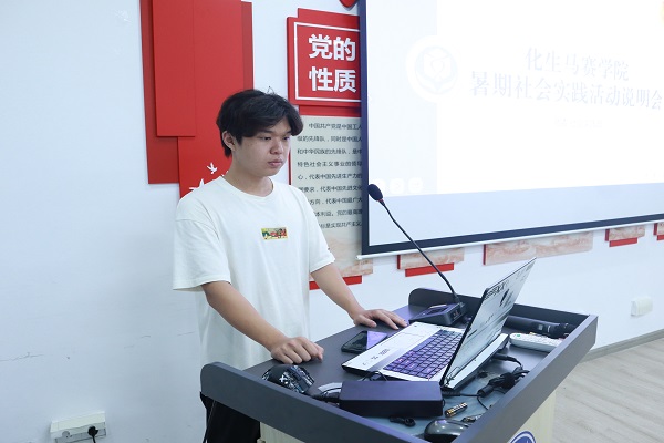 为进一步做好2023年暑期社会实践工作,有效引导广大青年学生上好与现实相结合的“大思政课”,在社会课堂中受教育、长才干、作贡献,学院团委社会实践部于6月19日晚19:00在化生大楼s308教室开展暑期社会实践动员会,介绍实践活动相关事项,引导同学们更好地开展社会实践活动。团委书记李小睿老师、20级辅导员段炼老师出席活动。