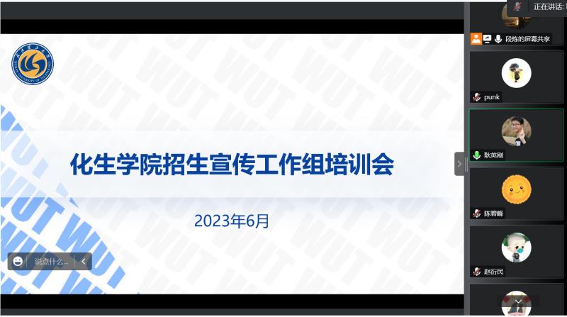 6月23日上午,化生学院通过腾讯会议在线上召开了2023年化生学院招生宣传工作组培训会,化生学院党委书记韩同远以及今年山东省招生宣传组全体成员参与。会议由学院党委副书记耿英刚主持。