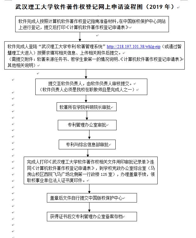 武汉理工大学软件著作权登记网上申请流程图(2019年)