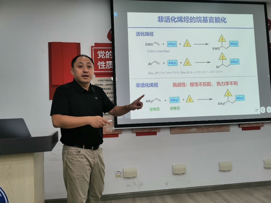 为了帮助师生拓宽学术视野,及时了解有机化学领域的前沿动态,2025年10月10日上午10点到11点,化生学院特别邀请了国家高层次人才、上海交通大学的朱晨教授,在学院308会议室做了一场主题为 “自由基重排反应” 的学术报告,化生学院黄毅勇、张成潘、张方林等教授和老师,以及研究生积极参与,现场学术氛围活泼热烈,科学研究气息浓厚。