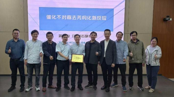 接着,游书力院士围绕 “芳香化合物手性转化” 这一核心议题展开报告。他指出芳香化合物作为来源广泛、廉价易得的基础化学品,传统手性转化方法存在多步反应、保留芳香性等局限,极大制约了其应用价值,因此开发高效、高选择性的直接手性转化技术具有重要科学意义与应用前景。随后,游院士结合课题组近期研究成果,深入浅出地讲解了通过新型金属配合物、有机小分子催化剂,以及光催化激发态实现的系列不对称去芳构化新反应,不仅分享了独特的反应机制研究发现,还展示了以这些新反应为关键步骤完成的多个天然产物高效合成案例,内容兼具理论深度与实践指导价值。