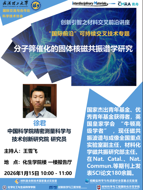 【学术讲座】中科院徐君研究员:分子筛催化的固体核磁共振谱学研究