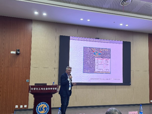 论坛第二部分由新加坡工程院院士John Wang教授主持。来自意大利的里雅斯特大学的欧洲科学院院士Paolo Fornasiero教授以“金属纳米粒子-团簇、单原子及其可持续催化”(Metal nanoparticles, clusters, single atom or combination for sustainable catalysis)为题,详细介绍了金属纳米材料在催化领域的应用与挑战。
