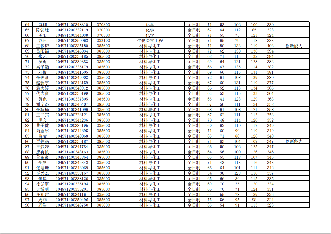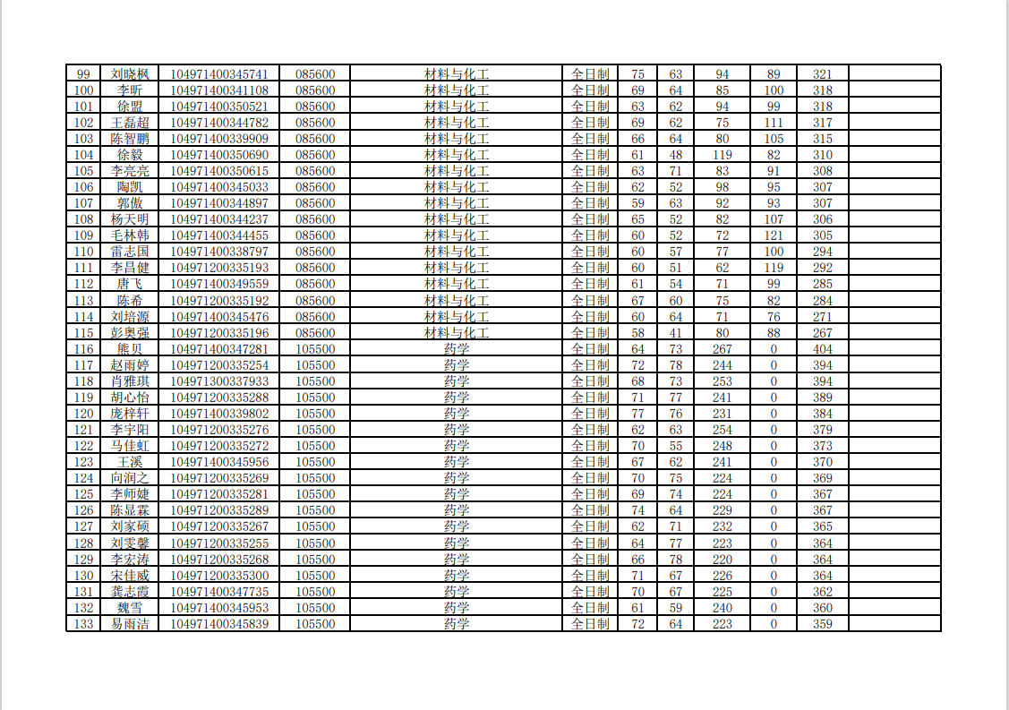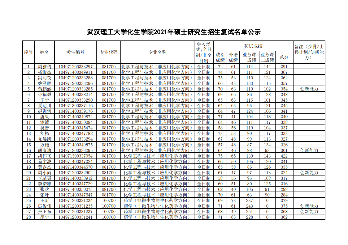 武汉理工大学化生学院2021年硕士研究生招生复试名单公示